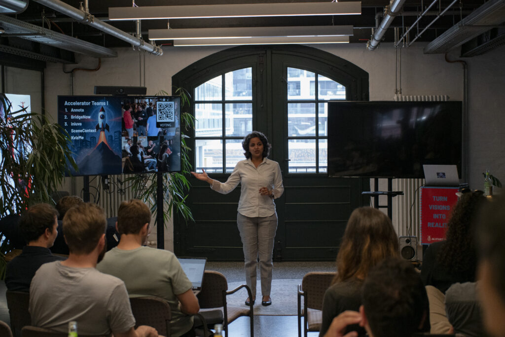 Frau Anandi Iyer, Direktorin des Fraunhofer India Office und Gründerin des German Innovation Forum in Indien, ging auf die Dynamik indisch-deutscher Teams ein. Sie erläuterte, wie unterschiedliche Vorstellungen von Zeit und Entscheidungsprozessen in Technologieteams Kommunikationsbarrieren verursachen können – ein Thema, das viele im Publikum aus eigener Erfahrung nachvollziehen konnten.