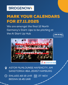 Bridge Now is a part of the 12 selected Start-Ups to Pitch in the Final Graduation Event of AI Start Up HUB. We are very happy to celebrate this milestone and the past 6 months of intensive immersion into developing the Bridge Now Platform with you all.